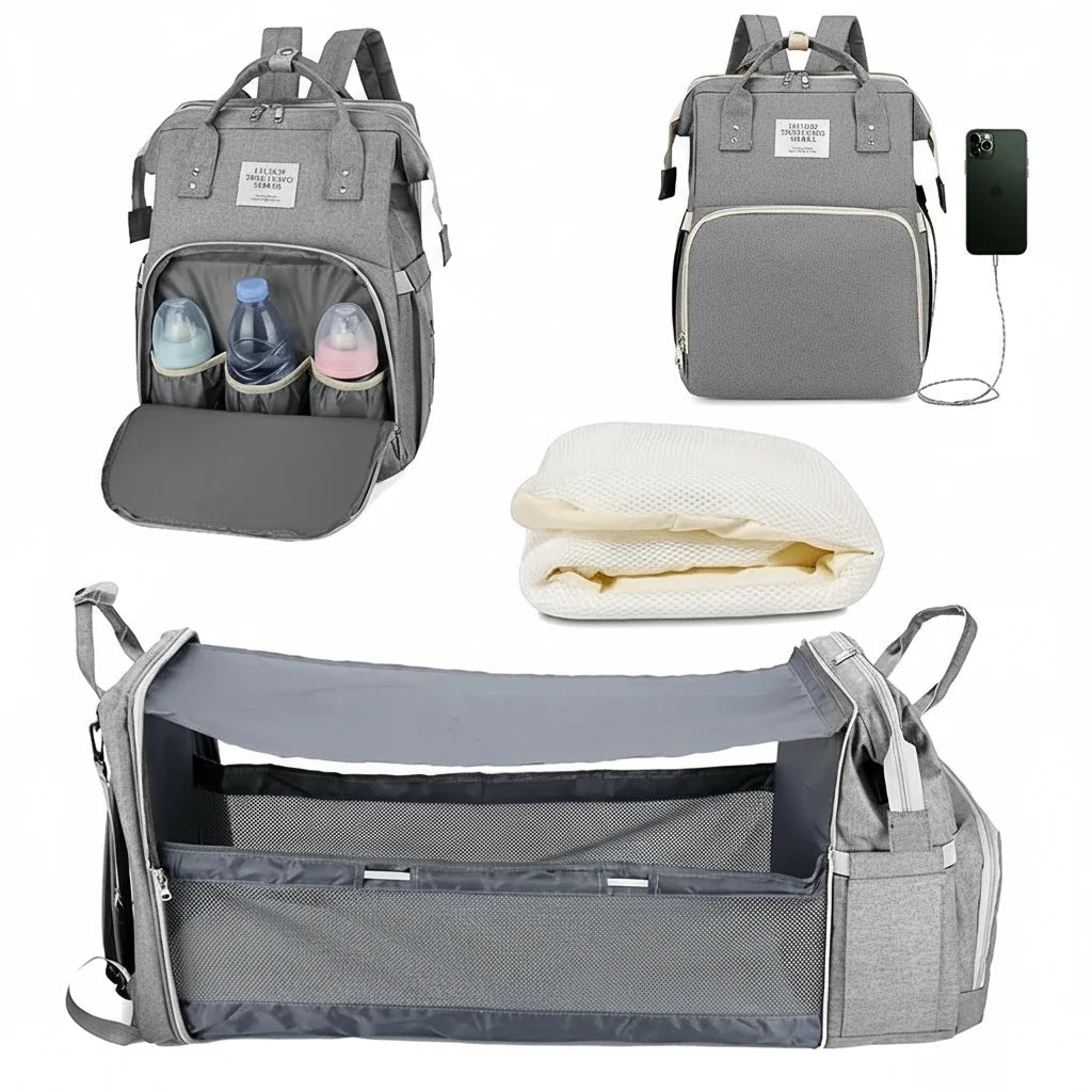 Sac à Langer 3-en-1 avec Lit Bébé Pliable & USB