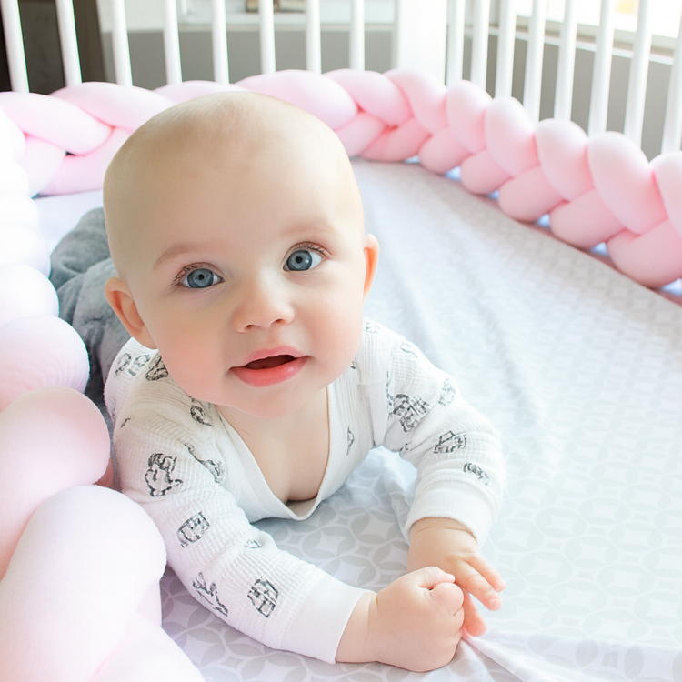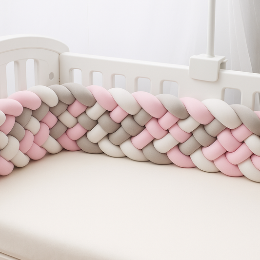 Tour de Lit Tressé - BraidedSafe™ - Gris, Rose & Blanc