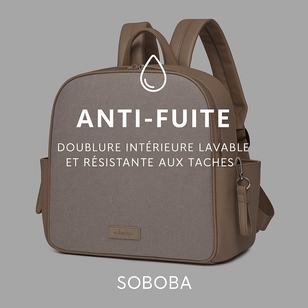 Sac à langer taupe Kalinatur modèle Soboba, grande capacité et tissu imperméable.